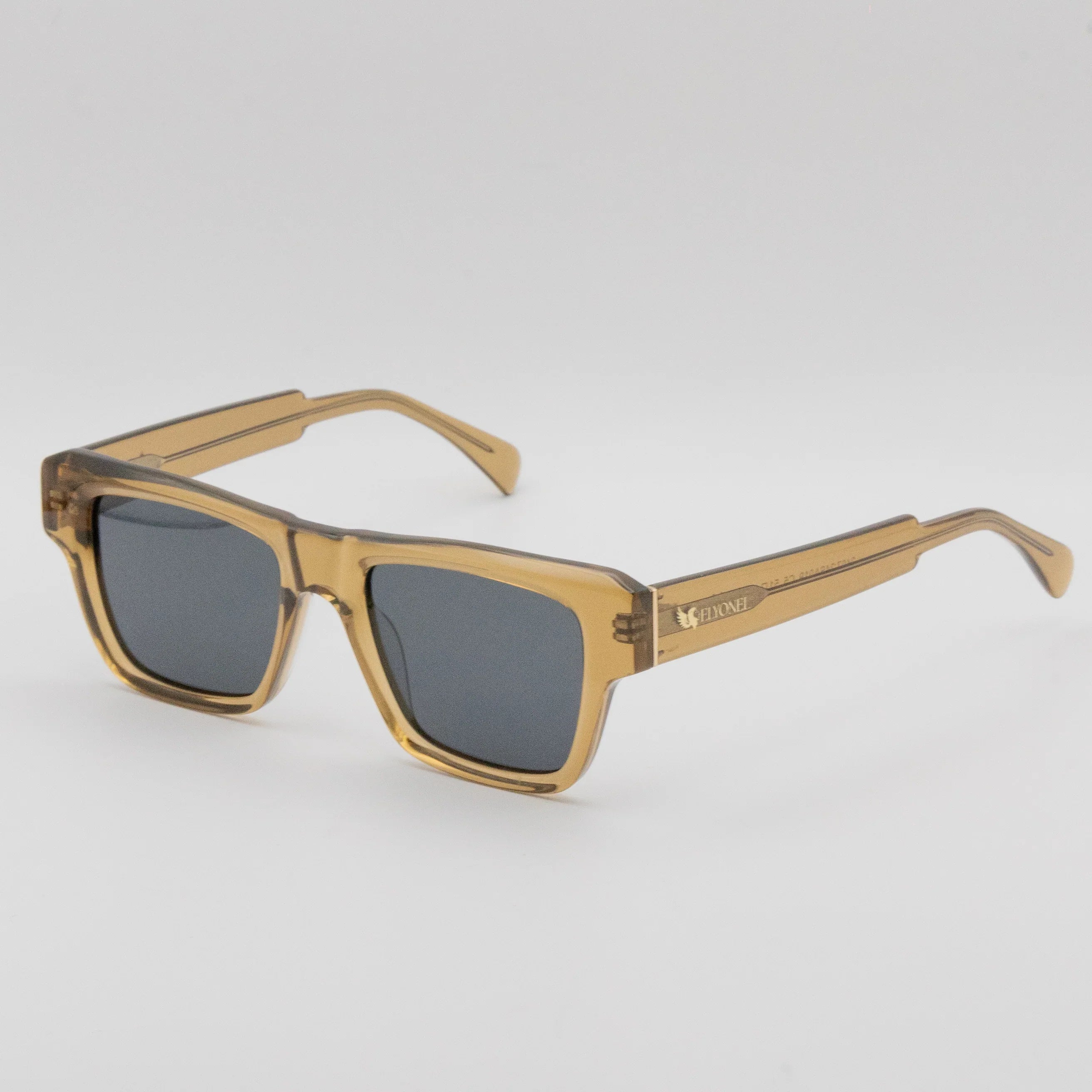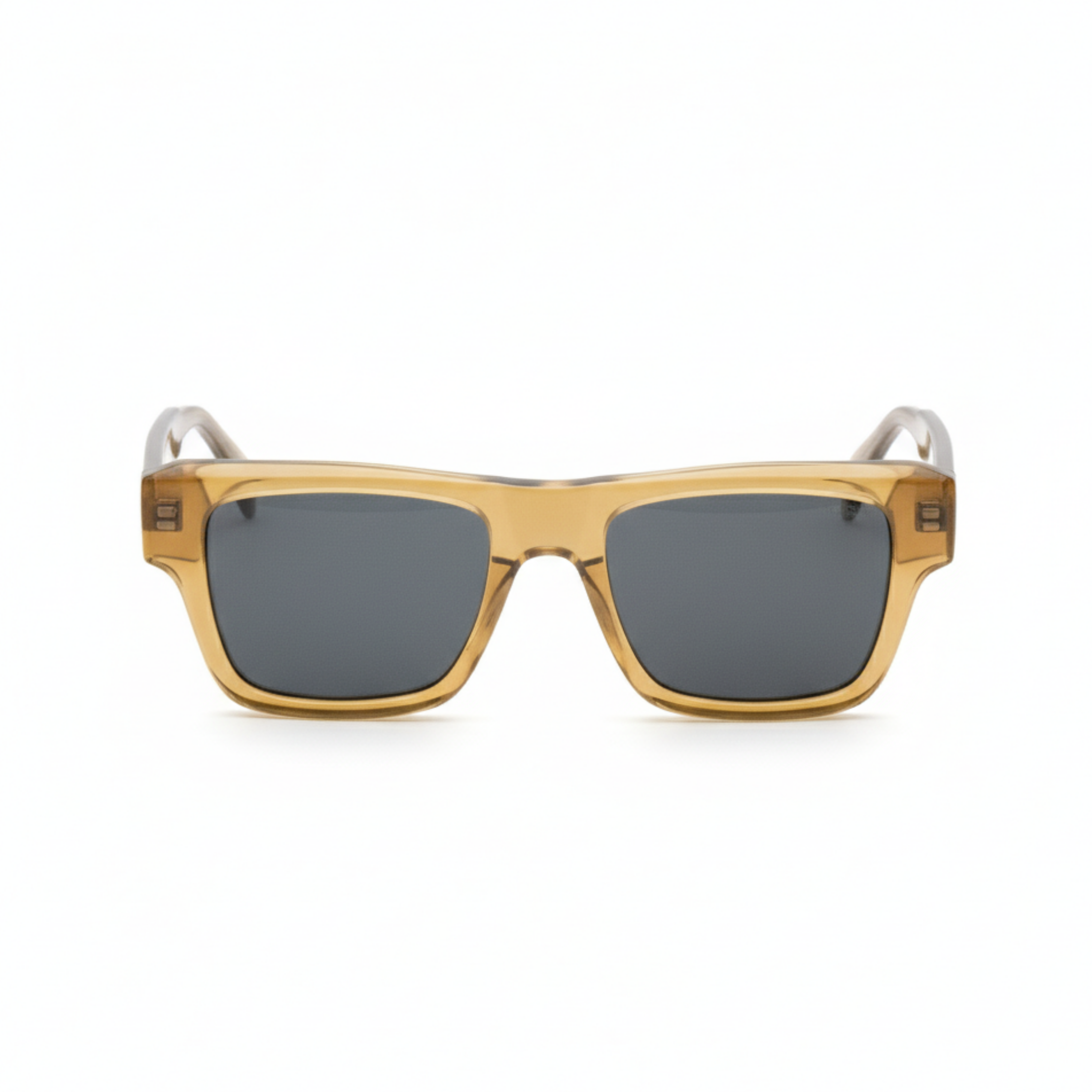 Lunette de soleil CARRÉE EN ACÉTATE AMBRE TRANSLUCIDE DORÉ – UV400 • gris polarisés
